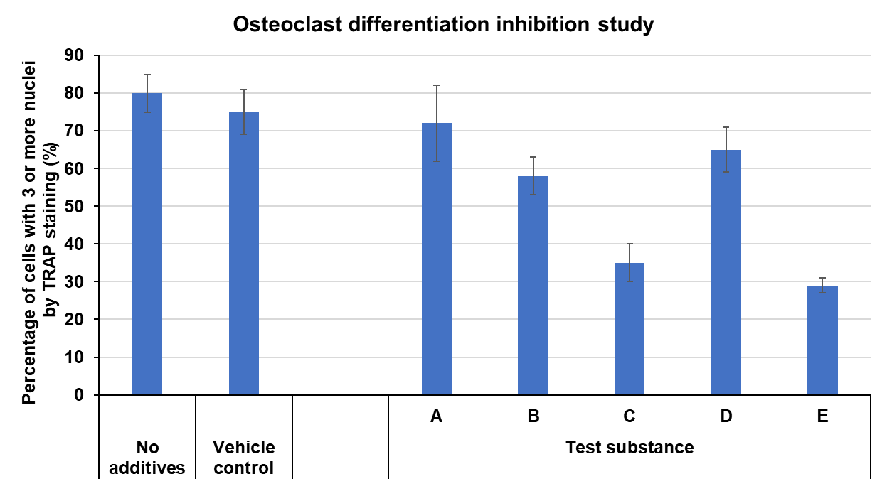 This study will examine the effects of test substances on osteoblast and osteoclast differentiation, with the aim of verifying functional substances that support bone health and searching for new substances.