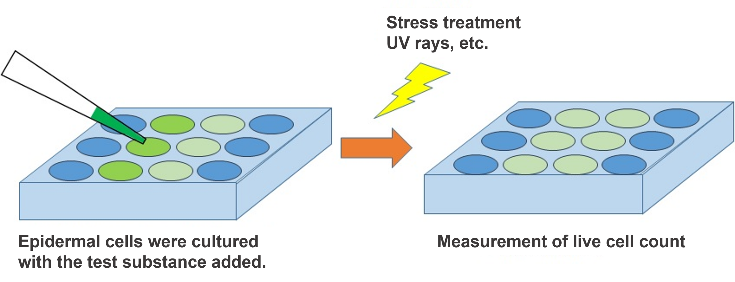 This study will examine the cell activation and stress protection/avoidance effects of test substances using epidermal keratinocytes, with the aim of verifying and discovering new functional substances that protect the skin from UV, oxidation, and other stresses.