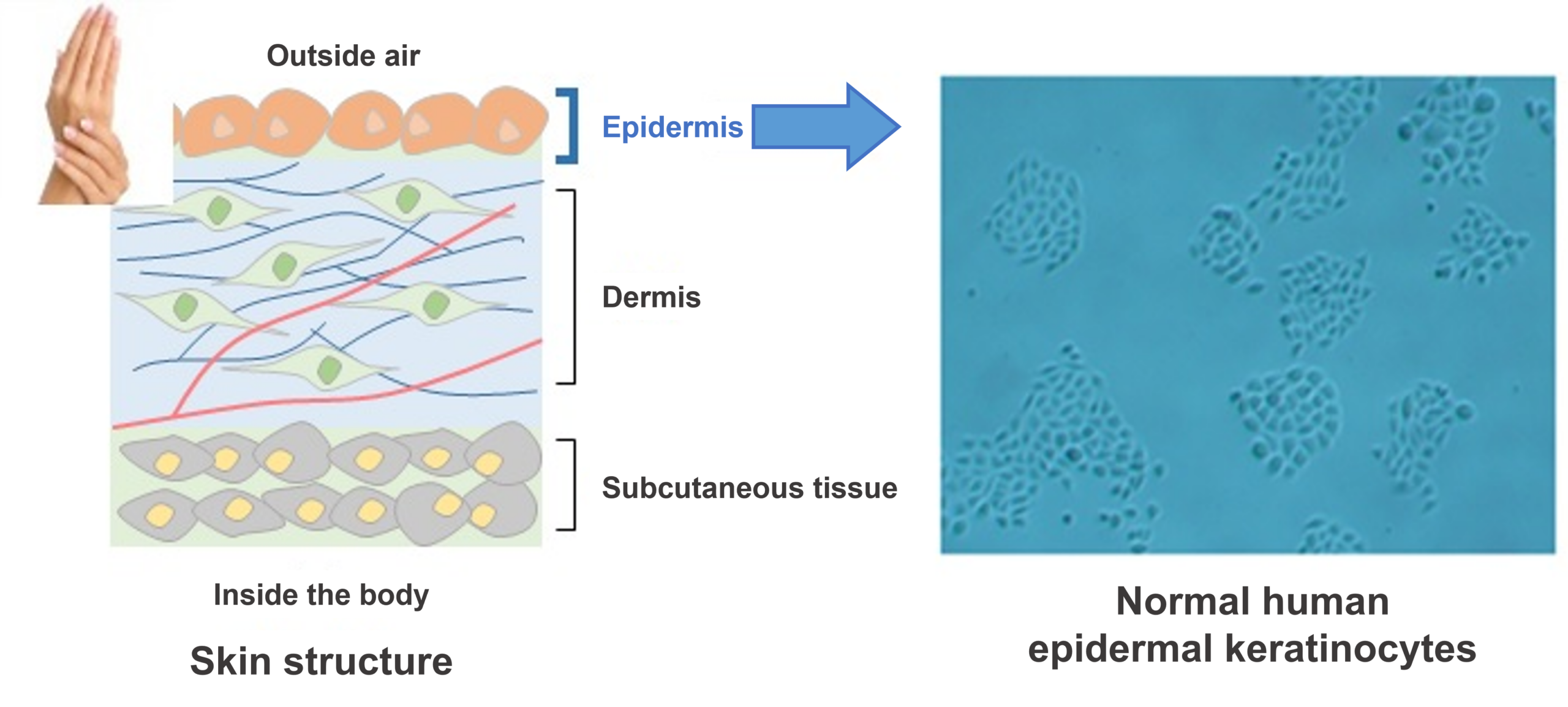 Epidermal keratinocytes are located on the outermost layer of skin and protect it from dryness and UV rays. Damage to epidermal keratinocytes due to exposure to ultraviolet (UV) radiation, oxidation, and other stresses can lead to a variety of skin disorders, making them extremely important cells from a cosmetic perspective.